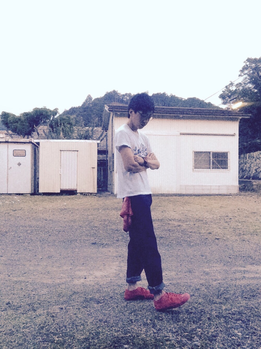 暑いけど小物を赤で統一して頑張ってみました‼︎ バンズのスニーカーは元々はホワイトなんですがレッドに染めてみました。 やってみると楽しいです♫ 次はクラッシュデニムを作成したいな。当分ヒマだし。