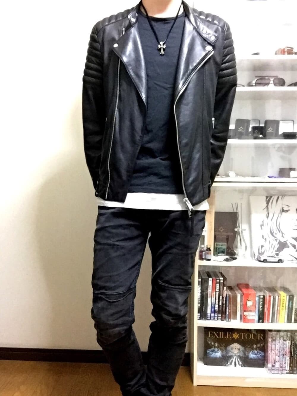 hideのライダースジャケット「JASPER LEATHER BIKER | キルティングライダースジャケット」を使ったコーディネート