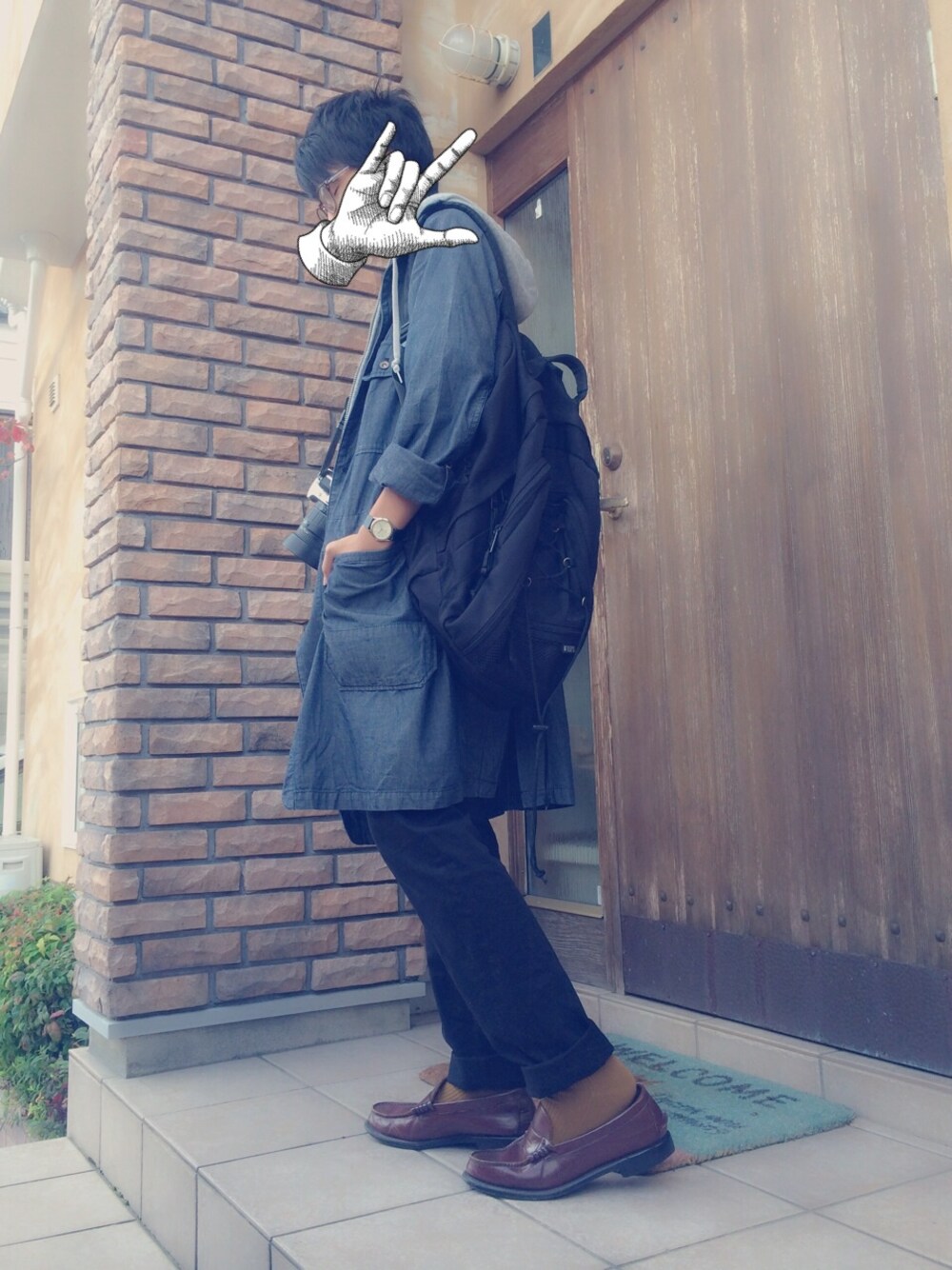 ロングコート:古着 パーカー:UNIQLO 時計:SEIKO 靴下:UNIQLO バックパック:WESTERNPACK 伊達眼鏡:WEGO 外出たのに寒すぎてすぐにUターン。