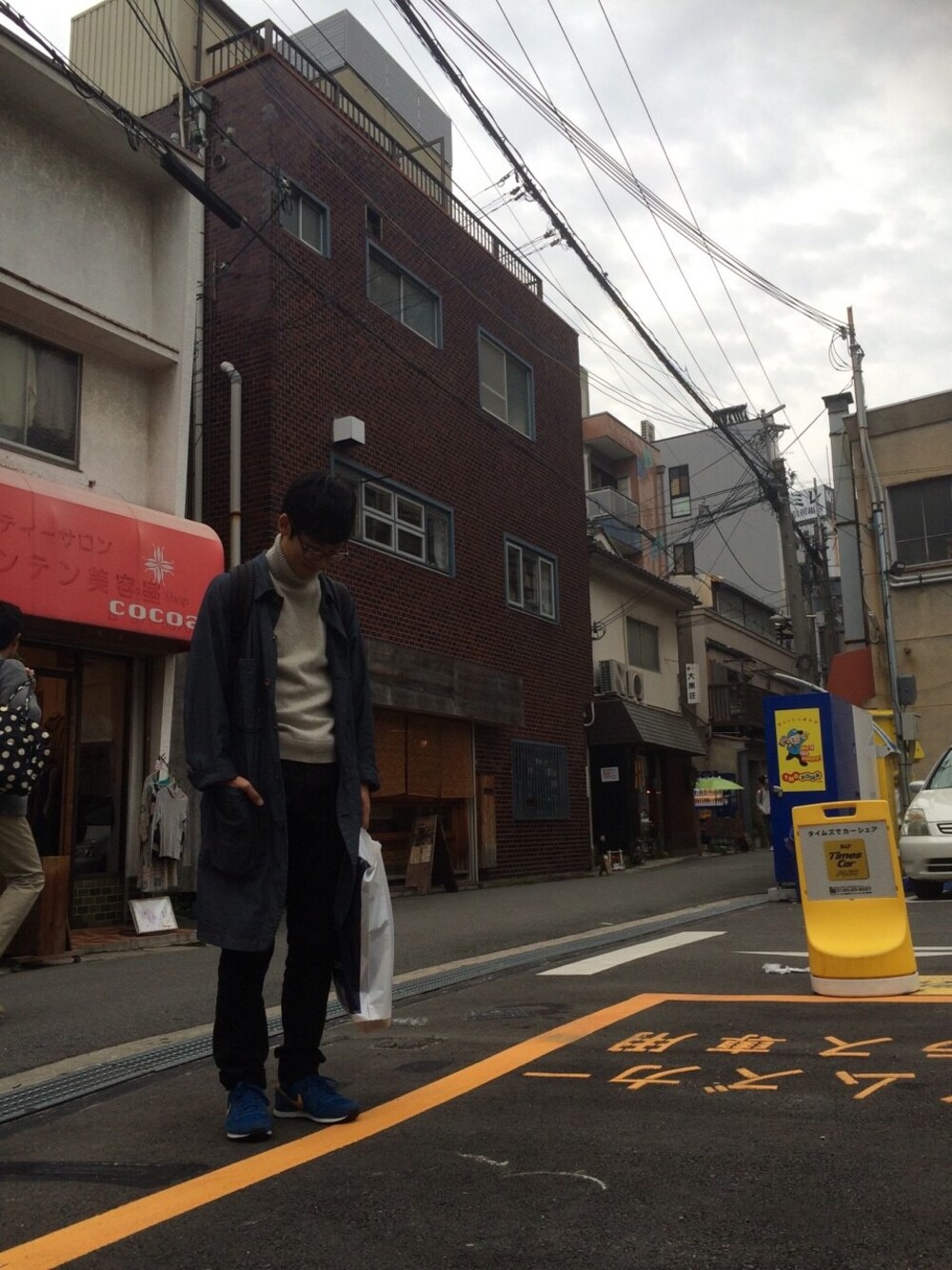 タートルネック:UNIQLO ロングコート:古着 バックパック:WEST PACK 中崎町周辺でお買い物ー。 いいとこすぎた