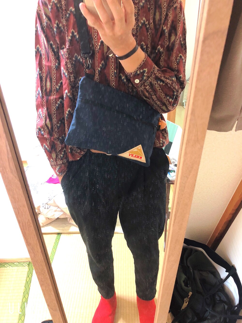 ひでまさのショルダーバッグ「【KELTY/ケルティ】ナイロンサコッシュ フラットポーチM / VINTAGE FLAT POUCH M」を使ったコーディネート