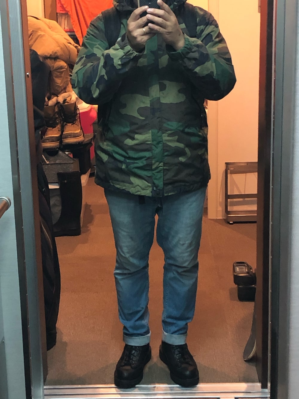 アウトドアーとミリタリーな48歳おじさんのナイロンジャケット「<THE NORTH FACE(ザノースフェイス)> CAMO SCOOP JACKET/アウター◆」を使ったコーディネート