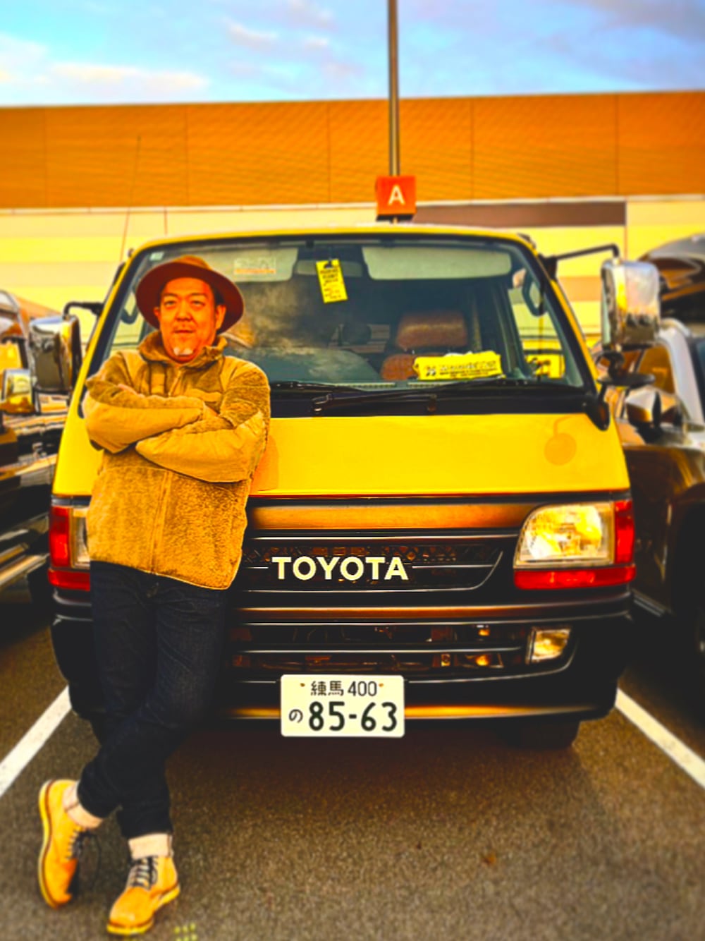 おじさんは新たな車を手に入れた フルカスタムハイエース 色もオールペイントしてマスタードイエロー 20年前の車です。