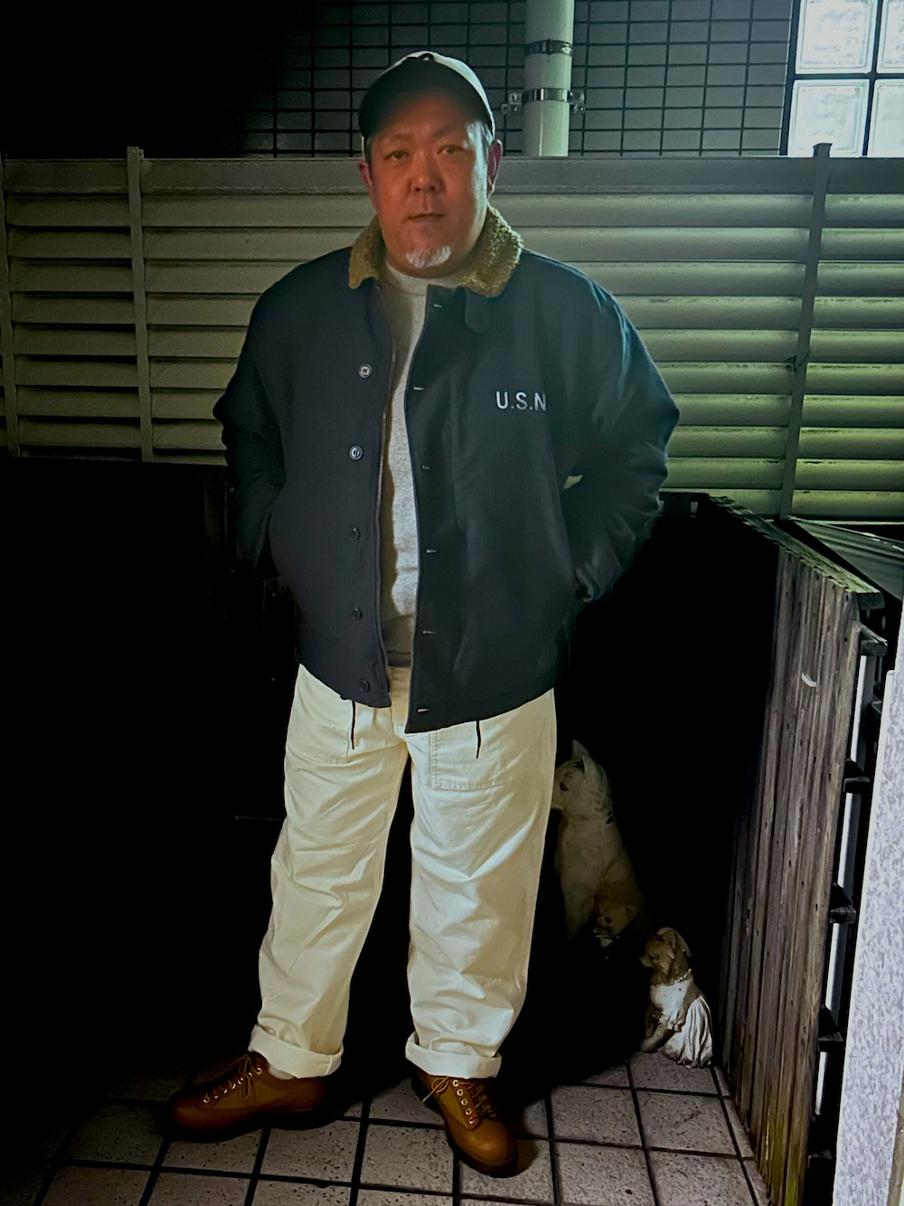 軍のものでも綺麗めを意識して白とネイビーを 合わせてみました