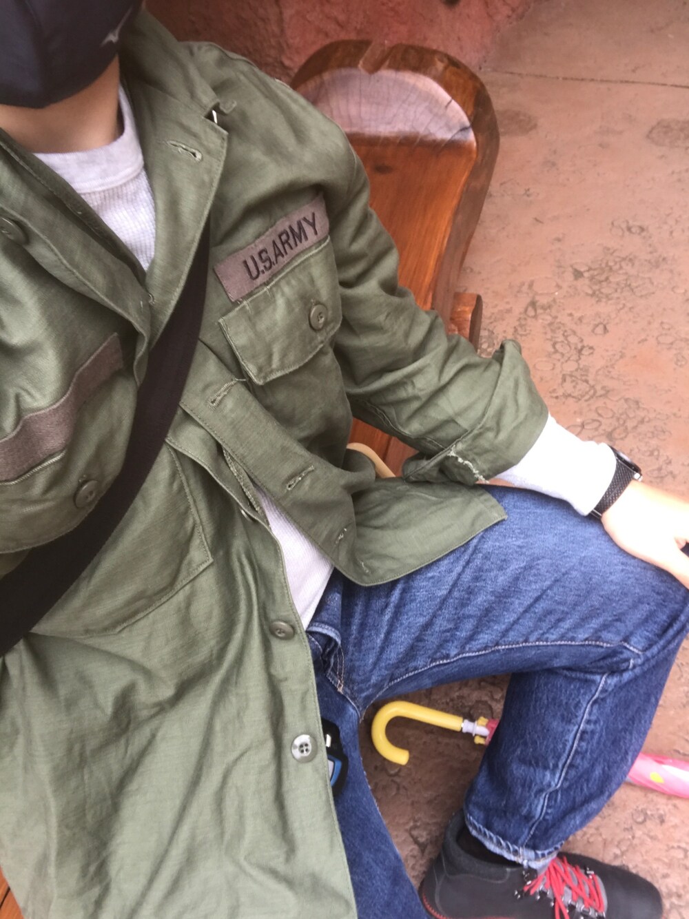 中田商店で買った復刻のユーティリティシャツ(og107) せっかく夜なべして縫いつけた二等軍曹ワッペンは入りきらず泣 久々のディズニーは美女と野獣に乗れて大満足!