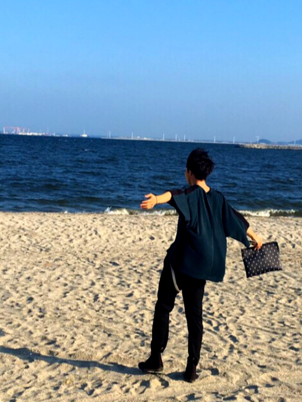 海までドライブした時の写真! SHAREEFのTシャツとlidnmのパンツは夏でも最高に涼しいです! このTシャツ坂口健太郎くんとTシャツおそろやった 😂