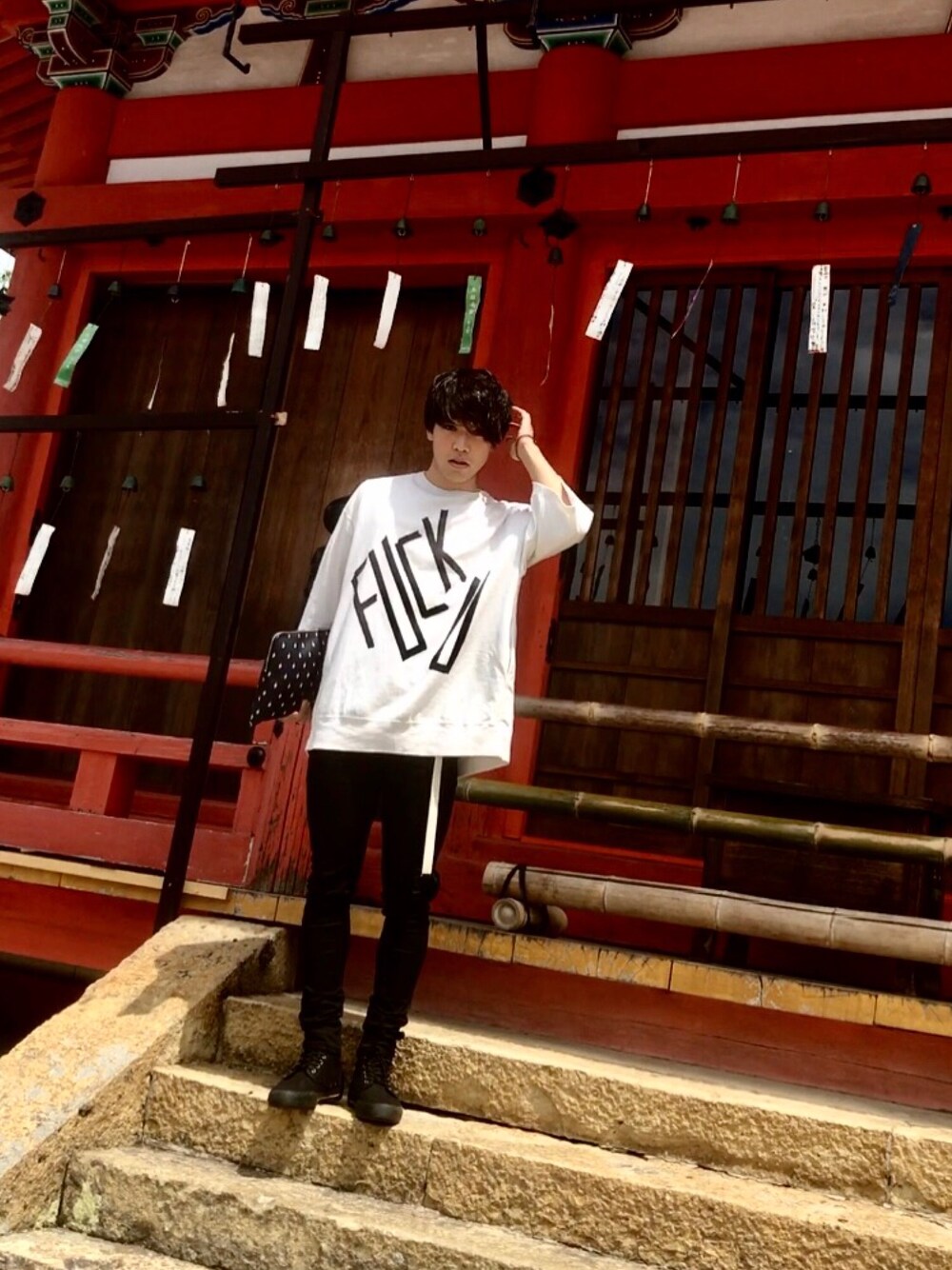 今日は清水寺までドライブしてきました! lad musician の fuck u Tシャツ 最高に可愛くてお気に入りです! そして、買ったばかりの lidnm のスキニーは履いてるのかわからなくなるほどの着心地!!