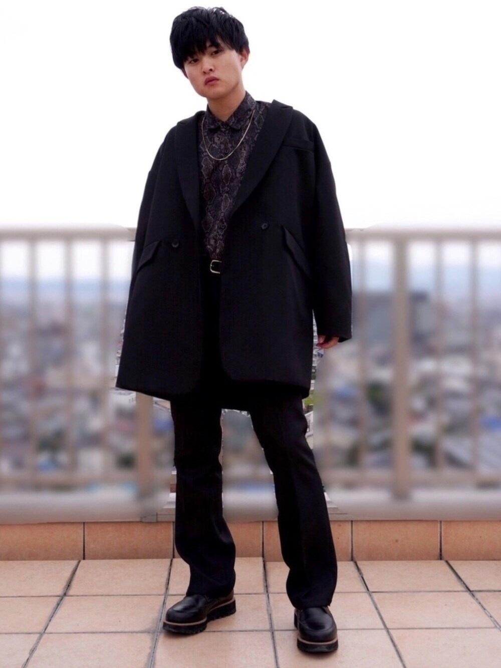 ご覧頂きありがとうございます😊 いいね、お気に入り、フォローして頂けると 今後のモチベーションになるので嬉しいです💁🏻♂️ 去年に買ったオーバーサイズのテーラードジャケットです🧥 オールブラックでモード系にしました🤗 インナーに黒のパイソン柄でさりげなく変化をつけてます🐍