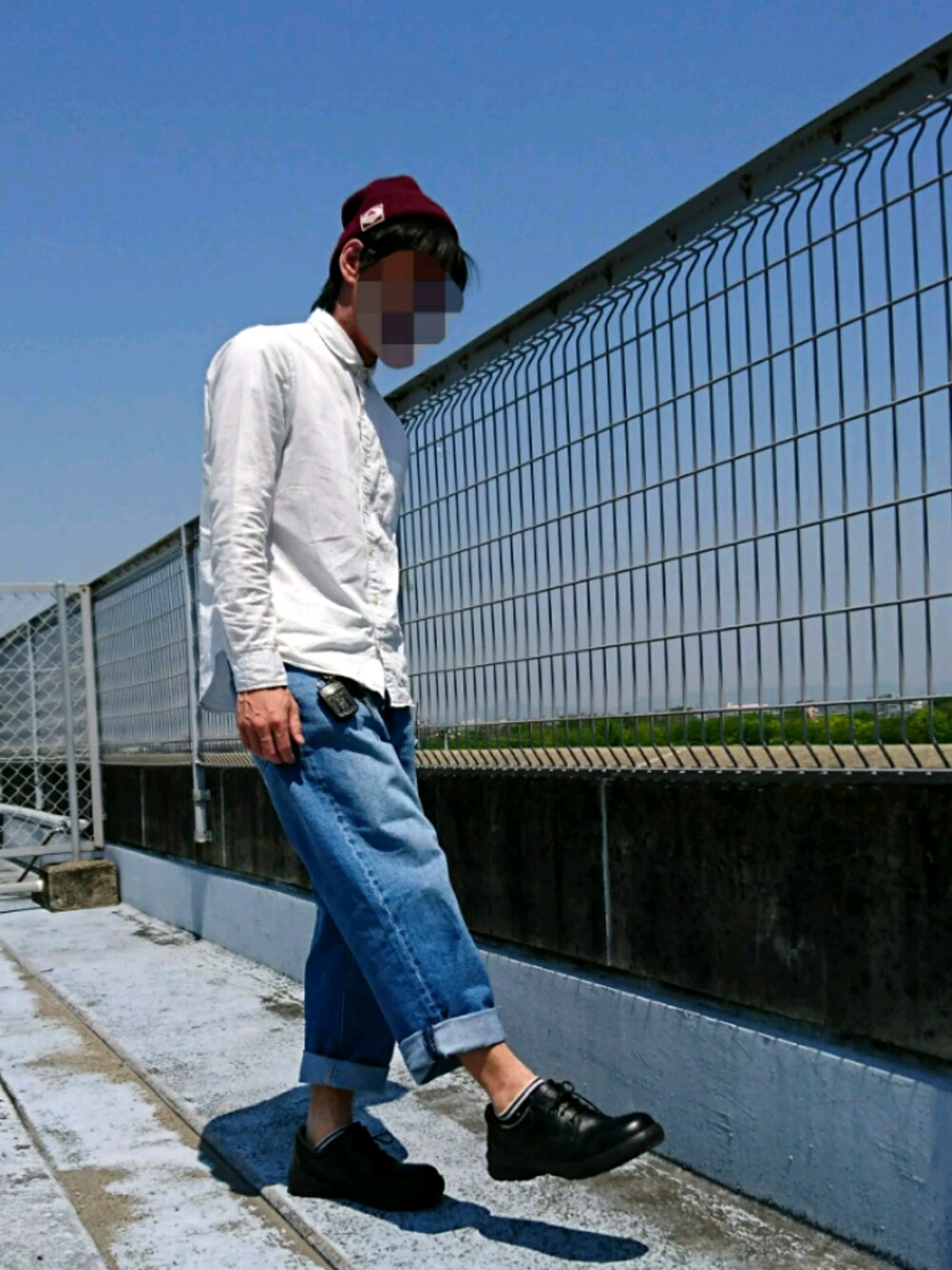☆古着にGUの激安コーデ☆ お気に入りのドット柄の白シャツと ビックデニムをロールアップ 白 青 黒 で色使いに気を付けました 革靴に素足は抵抗があるので 少し白のラインが見える くるぶし丈の靴下を履いてます 腰元は愛用のキーリングを ニットはいつものやつを 最近暑いので、シャツ1枚で十分ですね!