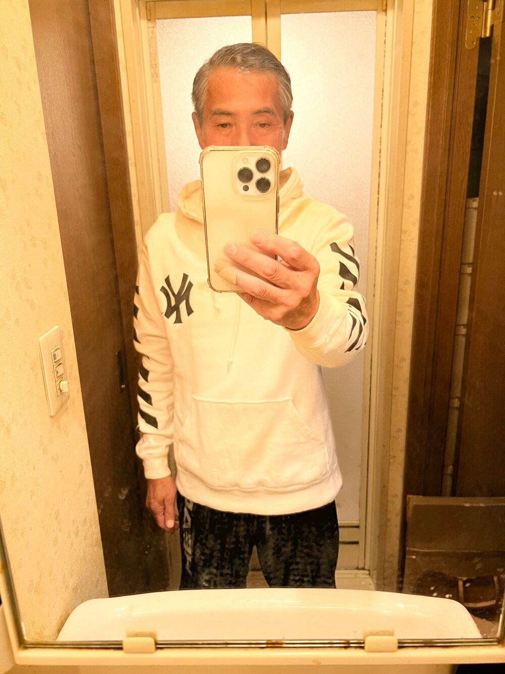 ご覧頂きありがとうございます。 majestic hoodie New York white x HEAD black shorts(majesticパーカーニュヨーク白×HEADブラック短パン)です。★パーカーはストラップが素敵です。 いつもフォローして下さりありがとうございます。