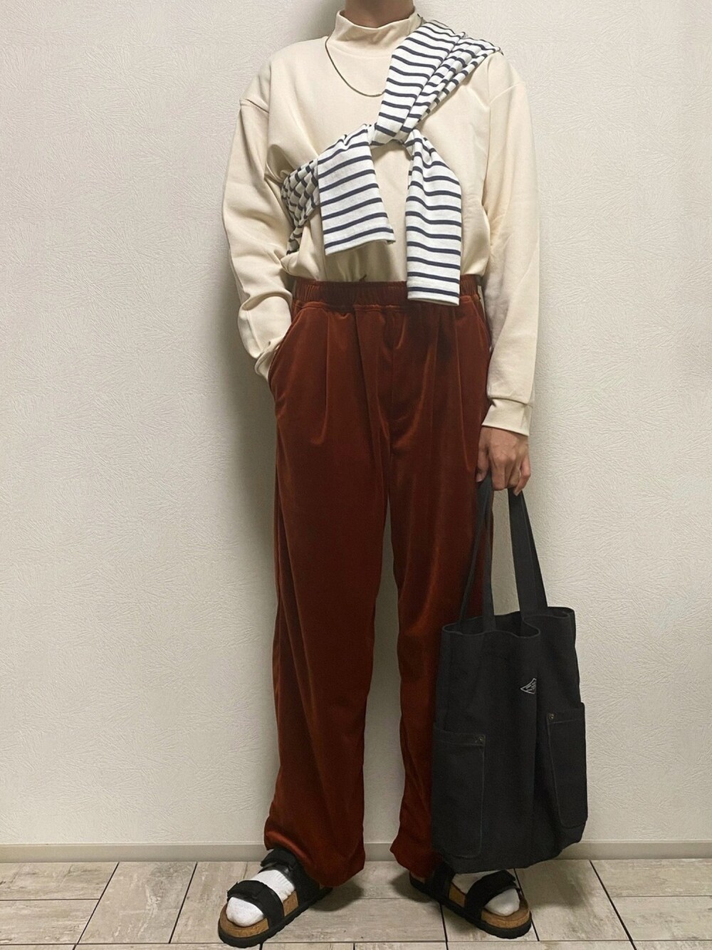 たなか/ YouTube「田中の試着室」のサンダルを使ったコーディネート