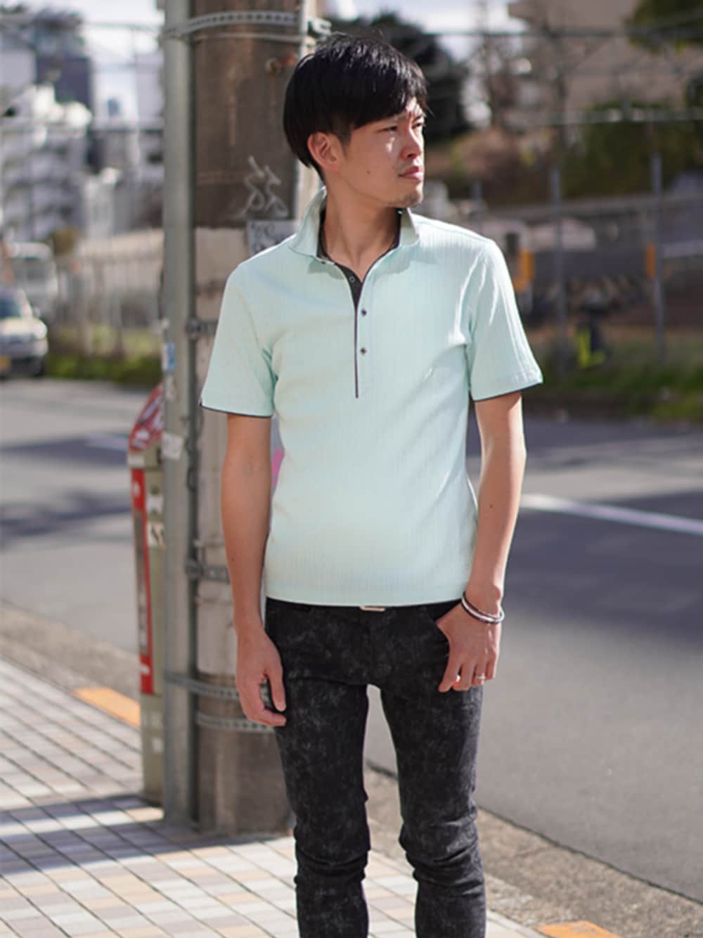 hideawaysofficial(ニコル本社)のポロシャツ「ランダムテレコショートレギュラーカラーポロシャツ」を使ったコーディネート