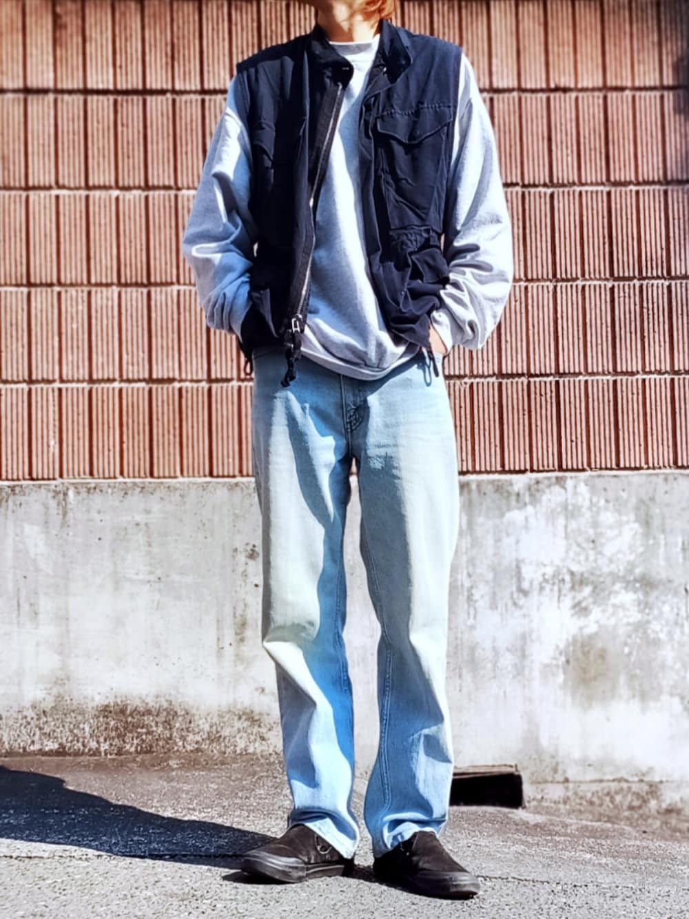 一変スウェットデニムだけですと、アメカジになりがちですが、上からミリタリーベストを足すことでアクセント出してます👍️ ベストあると使い回ししやすくて良きです\(^o^)/ VEST...Military TOPS...UNION LINE PANTS...LEVIS 505 SHOES...NIKE AIRFORCE1 Instagram→@wonder.b14