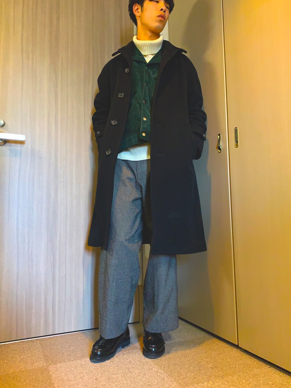 雪が降るほど寒い日はやっぱりアウターonアウター( ´∀`) モノトーンに緑を追加。 良ければいいねやsaveお待ちしております(*'▽'*)