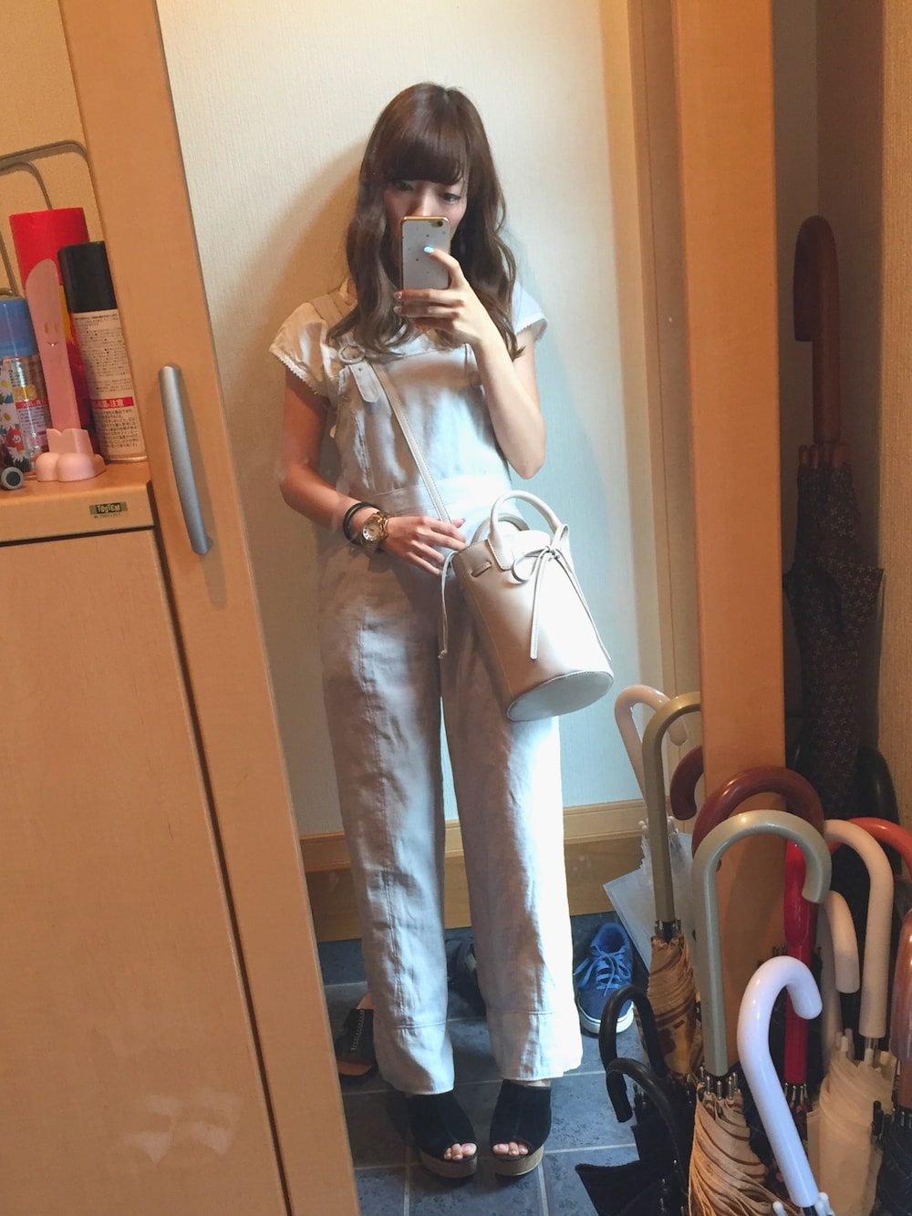 おはようございます♫ このオールインワンは インスタで見て一目惚れ♡ dazzlin行って試着して購入♡ 背の低い私でも ヒール履けば余裕で着れる! かばんも欲しかった バケツ型♡ ヘビロテ予定! 秋も使えるようにベージュ\(ˊ꒳ˋ)/