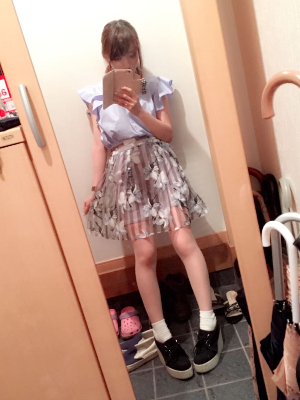 hidekaのスカート「ストライプ花柄オーガンジースカート」を使ったコーディネート