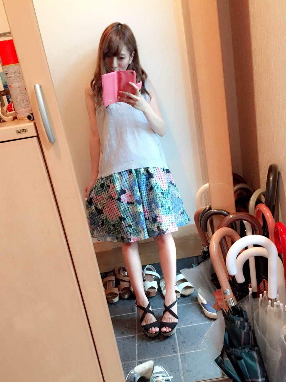 こんにちは♡ こないだの面接のコーデ♡ まだまだ暑いけど 8月の後半にも入ったから ちょっと秋意識♫ 秋ってなんか 暗めの色着たくなるから 暗めの色のスカートにした*ଘ(੭*ˊᵕˋ)੭* ੈ✩‧₊˚ 夏なら白のトップス合わすけど グレーならほんのり秋っぽいかなって♡ あ、仕事決まりましたっ♡ 28日の初出勤がどきどき♡笑