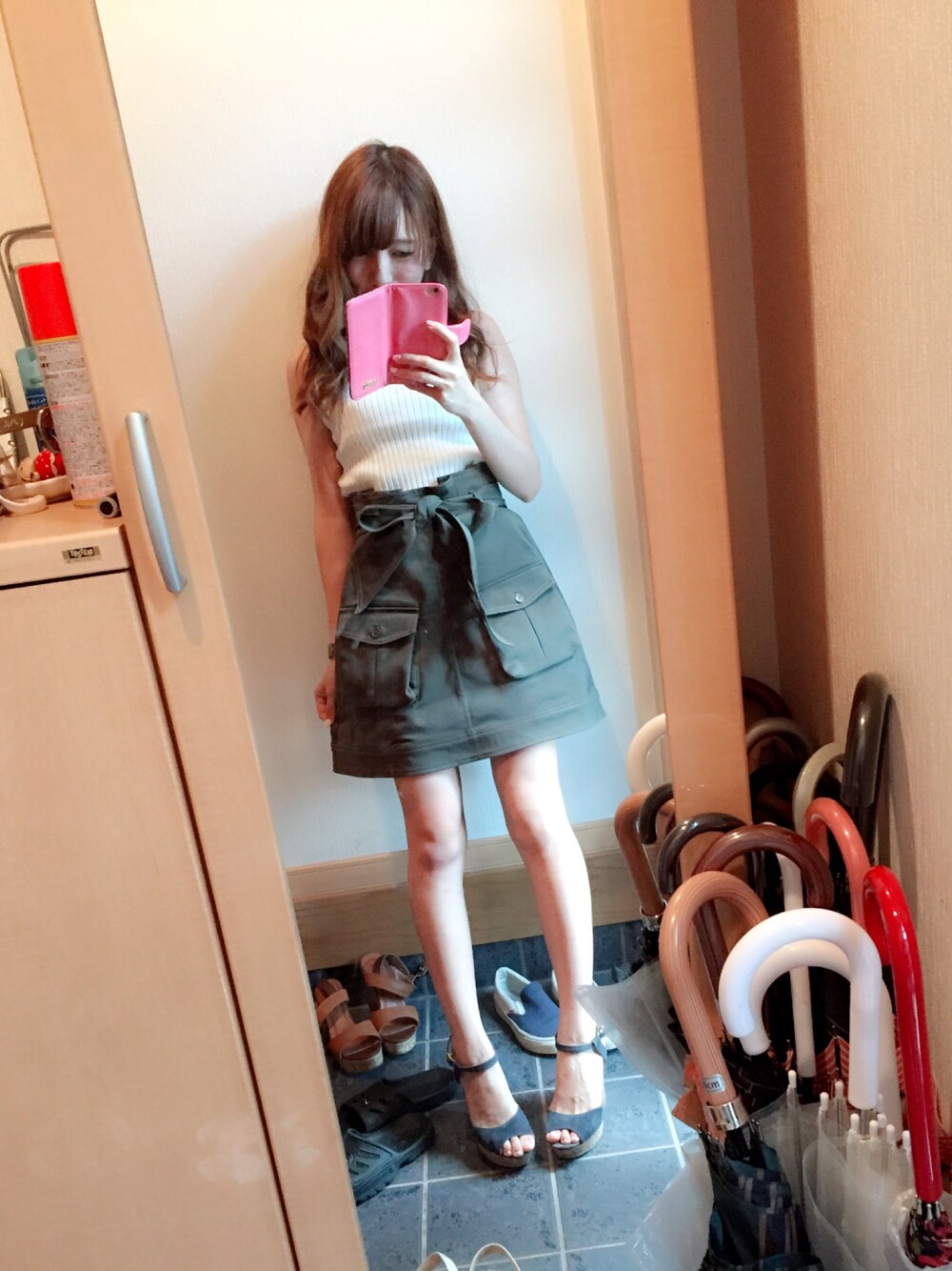 お久しぶりです! 8月の時のコーデ♫ ノースリやけど許してください(´×ω×`) カーキのスカートが めっちゃかわいくて 気に入ってます♡ 今回も全身dazzlin♡ もはや中毒!笑