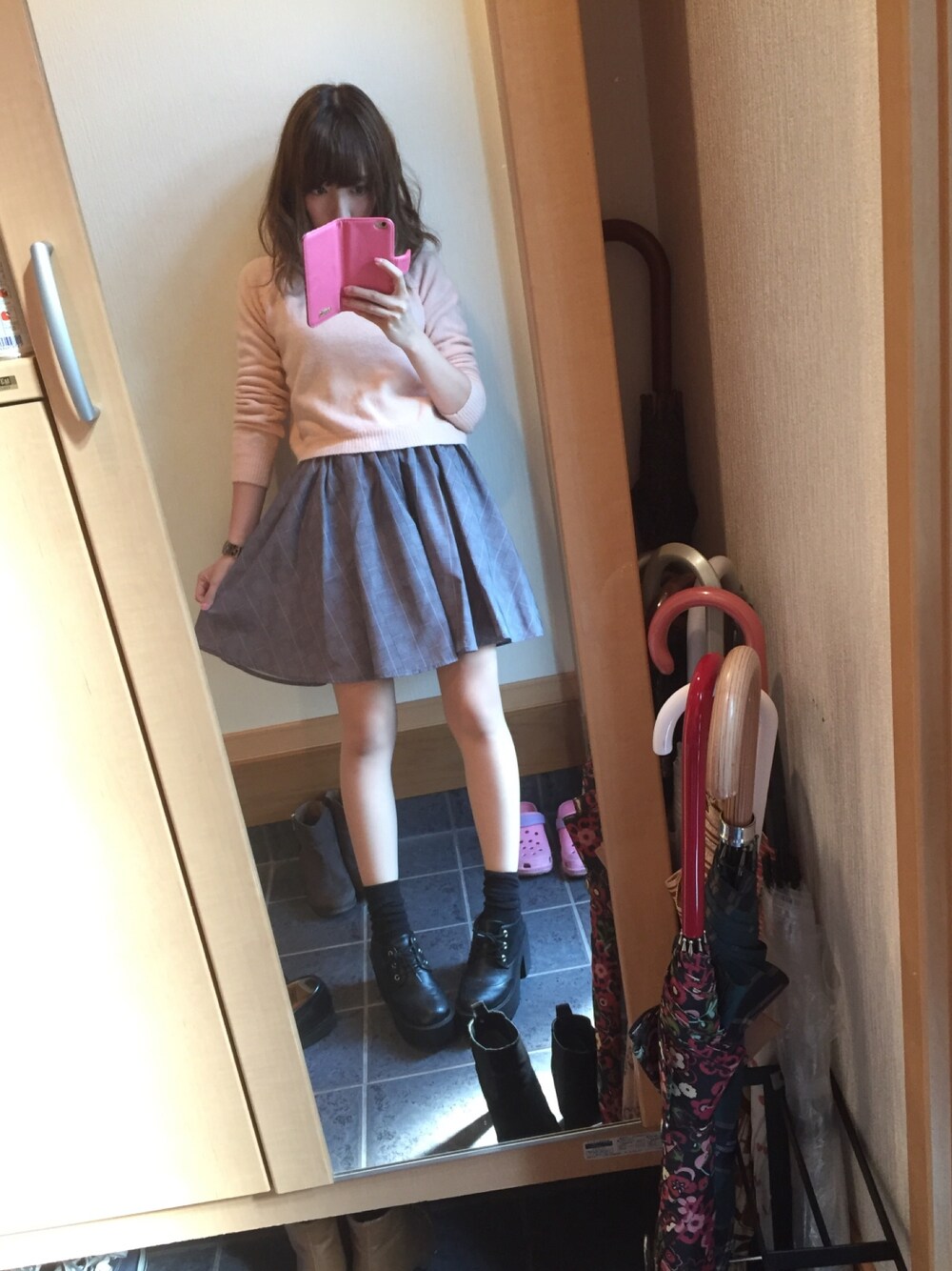 こんばんは! 今日2回目更新 ごめんなさい(;д;) 今回のコーデは 急いで選び取ったコーデ♫ 急いだにしては 結構好きな感じ♡ 今日、天気予報みてたら 今年の冬は雨が多いみたい(´×ω×`) 肌寒いし嫌だなぁ〜 けどけど! うちん家の大量の傘の活躍が 予想されます!笑