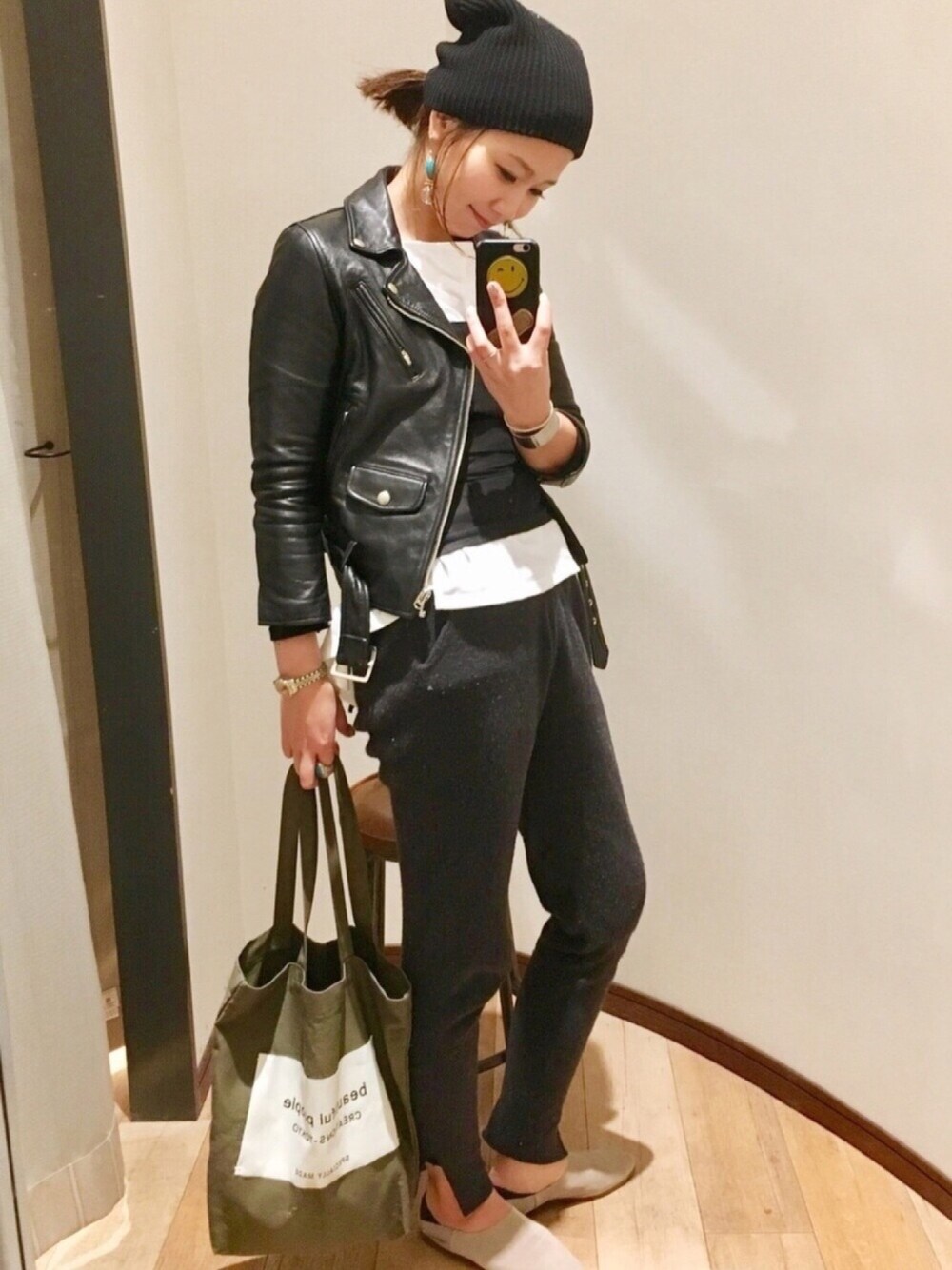 PATAZOのライダースジャケット「【beautiful people】vintage leather riders jacket ライダースジャケット」を使ったコーディネート