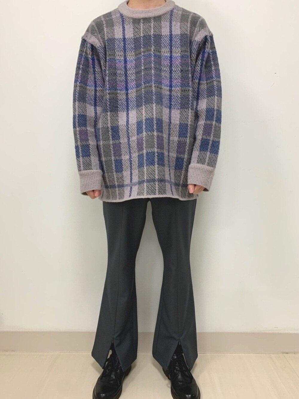 紫×グレーコーデです。このHAREの紫のチェックのニットが可愛いすぎて気に入ってます。セットアップで所持しているので、今度はセットアップで投稿したいと思います。センタースリットからチラッとみえる紫の靴下もポイントですね。パンツの形がフレアで非常に綺麗です。ちなみに、好きな色は紫です!これから紫コーデをどんどん増やしていきたいと思っています。 いいね、保存、フォローよろしくお願い致します。