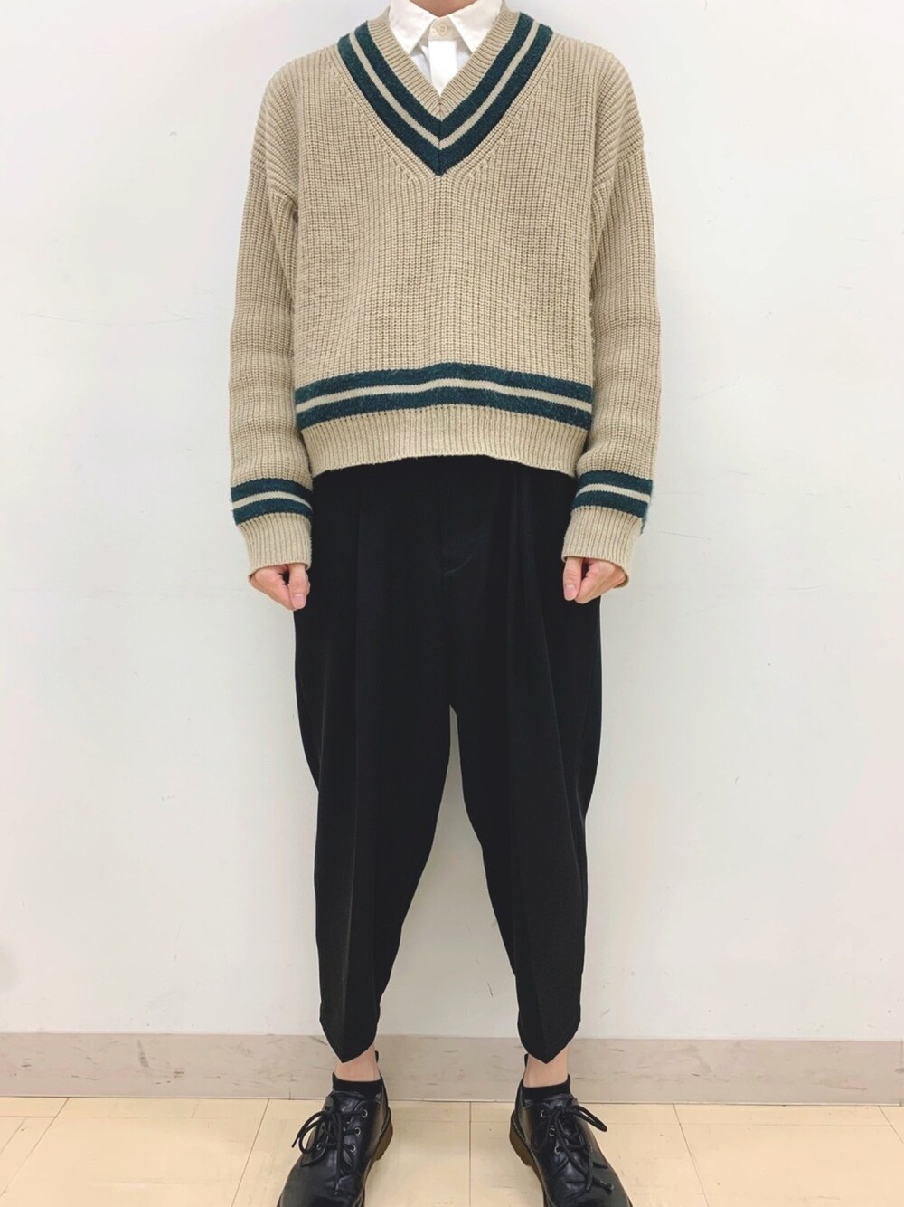 チルデンニットコーデです。ベージュの色味がとても可愛く、この上に黒のアウターを着ていましたが、チラッと見えるVラインとベージュの色味が映えてました!袖丈が長いのでダボっとたまる感じも良きです! いいね、保存、フォローよろしくお願いします!