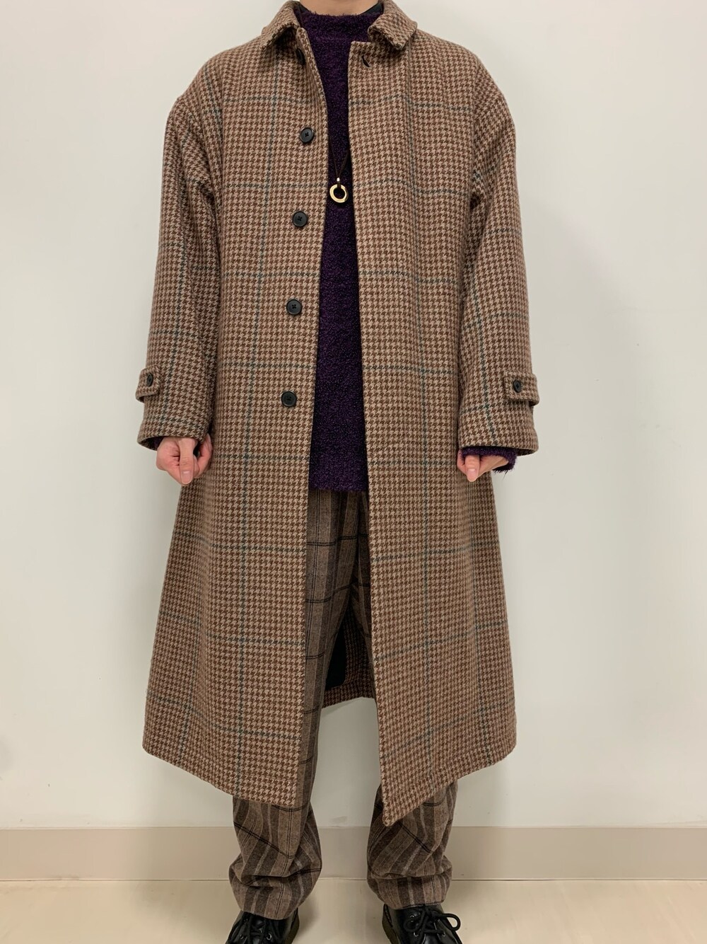 GUのアイテムを使ったブラウン系コーデです! GUのローゲージブークレセーターを着てみました。紫色とブークレの質感が気に入っています。 チェックのロングコートも可愛くておすすめです。
