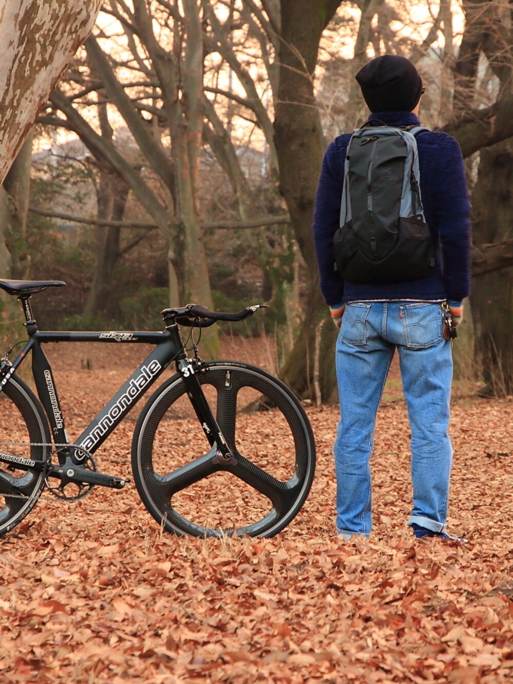 枯れ葉 と 自転車 と 僕 と この時間 ニット帽:Muji フリース:Patagonia デニム:Levi's 70-501(赤耳) スニーカー:JACK PURCELL バックパック:ARC'TERYX Arro グローブ:ARTESANIA 都心でも素敵な場所は沢山あります。 枯れ葉絨毯プライスレス!