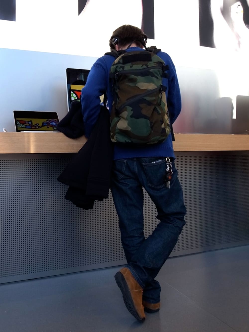 iPhoneの調整が悪く 先週アポーストアにてOSをファームから入れ直しても 改善する事なく、今日もアポーストア表参道へ行った。 結局は交換する事になった。 新しい5KのiMacが欲しいな〜と、いじり倒している輩! ガンジーセーター:Le Tricoteur デニム:A.P.C. ドンキーコート:okura ヘビースエット Nike:Maguma 迷彩:MYSTERY RANCH vega BOSE ♪The Crusher♪ music by The Ramones C.J Ramone 最高ですw
