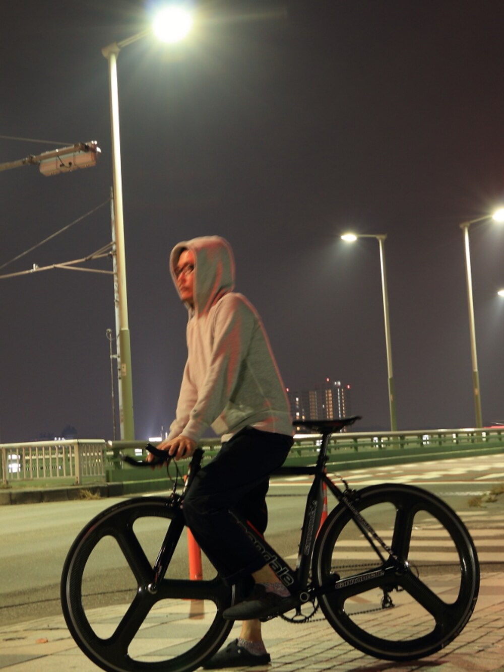 I like hoodie! Night view pic but…Very cold I got back home in five minutes my bike my life hoodie:Gymphlex Pants:*A Vontade sandals:Birkenstock Bike:Cannondale Instagram ID:six13_09