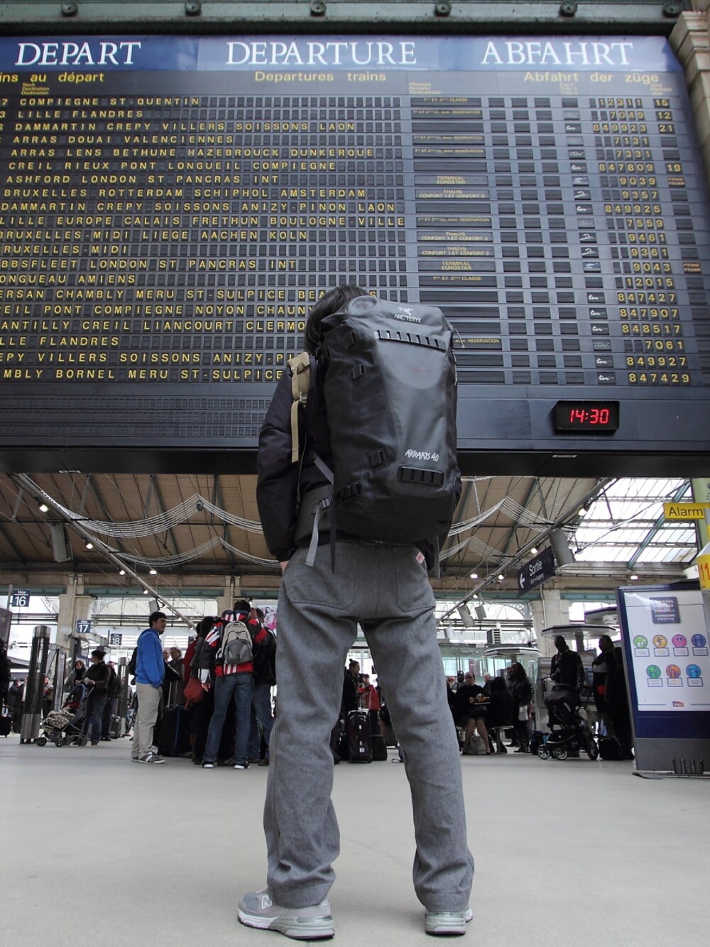 サラリーマンバックパッカー Gare du Nord Paris 2年前… 憧れの駅にて バックパック:ARC'TERYX Arrakis MYSTERY RANCH 1day Assault ハードシェル:ARC'TERYX βAR パンツ:Danton wool スニーカー:NB 993