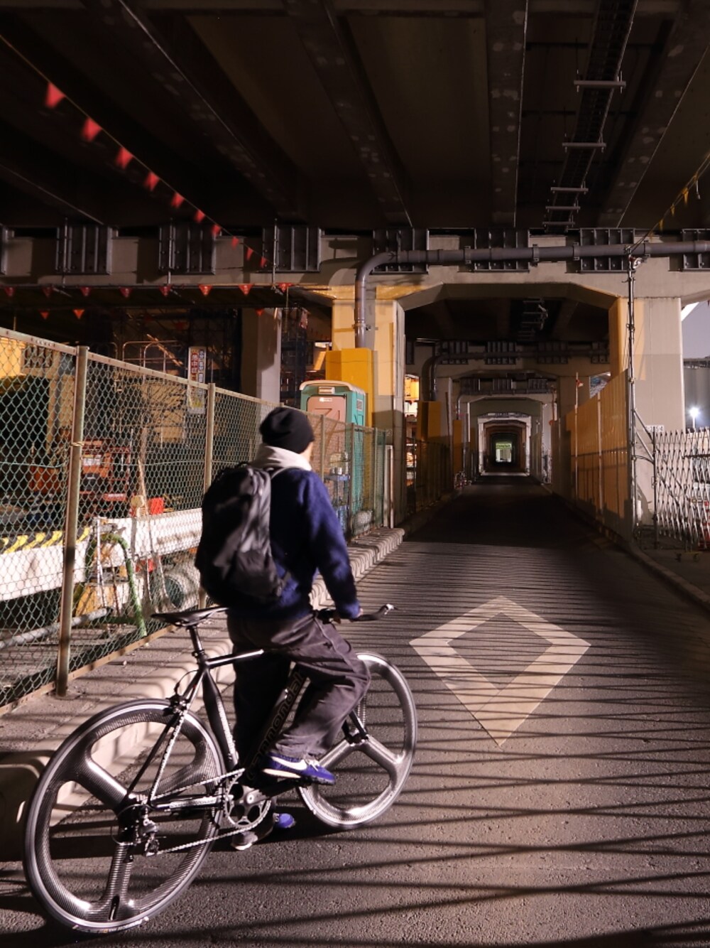 深夜徘徊 首都高横羽線 fleece:Patagonia Los Gatos Jacket hoodie:Gymphlex pants:GRAMICCI nike:WAFFLE RACER backpack:ARC'TERYX Arro Edition別注