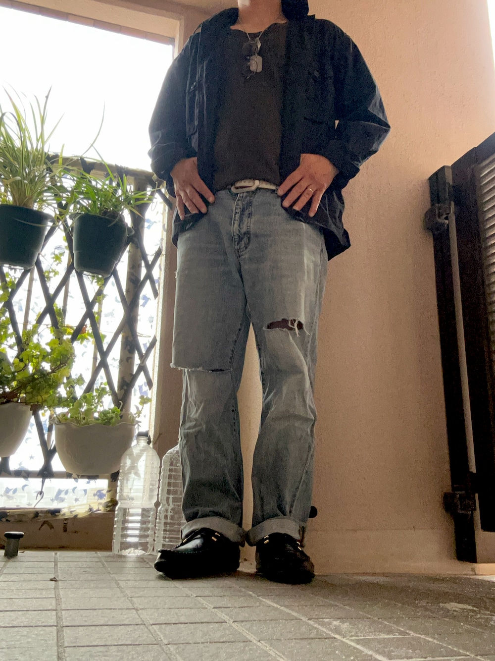 秋なので🍁ジーンズでダメージにロール🆙してみました。この黒のジャケットかなり着やすくてなんでも合いますし、かなり気に入ってます。💫