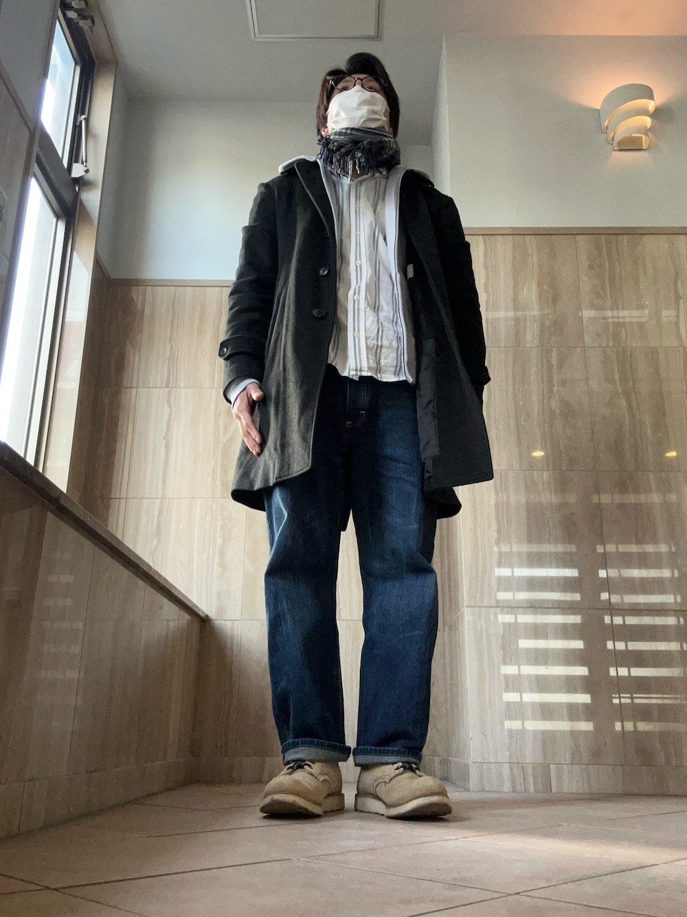 ご覧ありがとうございます。 今日はジーンズにミディアムコート🧥をチョイス✨して見ました。 ジーンズは👖アイリッシュ🥾セッターで合わせ見ました。 コートの中にパーカーを入れて見ました。 ストライプのシャツ着て見ました。 と言うふうにして見ました。