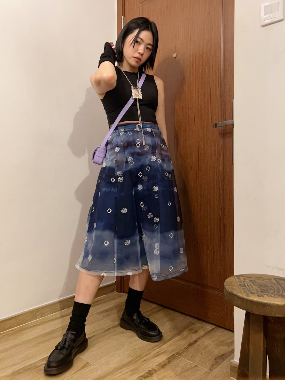 MoE のスカート「Embroidered See Through Skirt」を使ったコーディネート