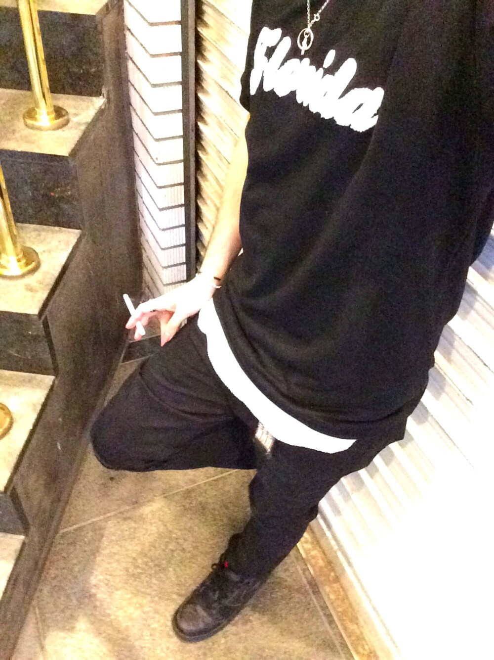 ブラックコーデ! 代官山にある知人のセレクトショップ『play代官山店』トップスに最近お気にのzipfiveのダメージスキニーパンツ。 挿し色にホワイト。 色んな色が入ってるベルトもアクセントに😊