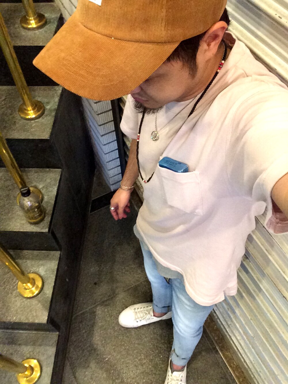 昨日の雑貨屋で買ったブラウンキャップ。淡い色に合うな〜って気に入りました! 今日はキャップを引き立てる為に他は色味を抑えたコーデ!