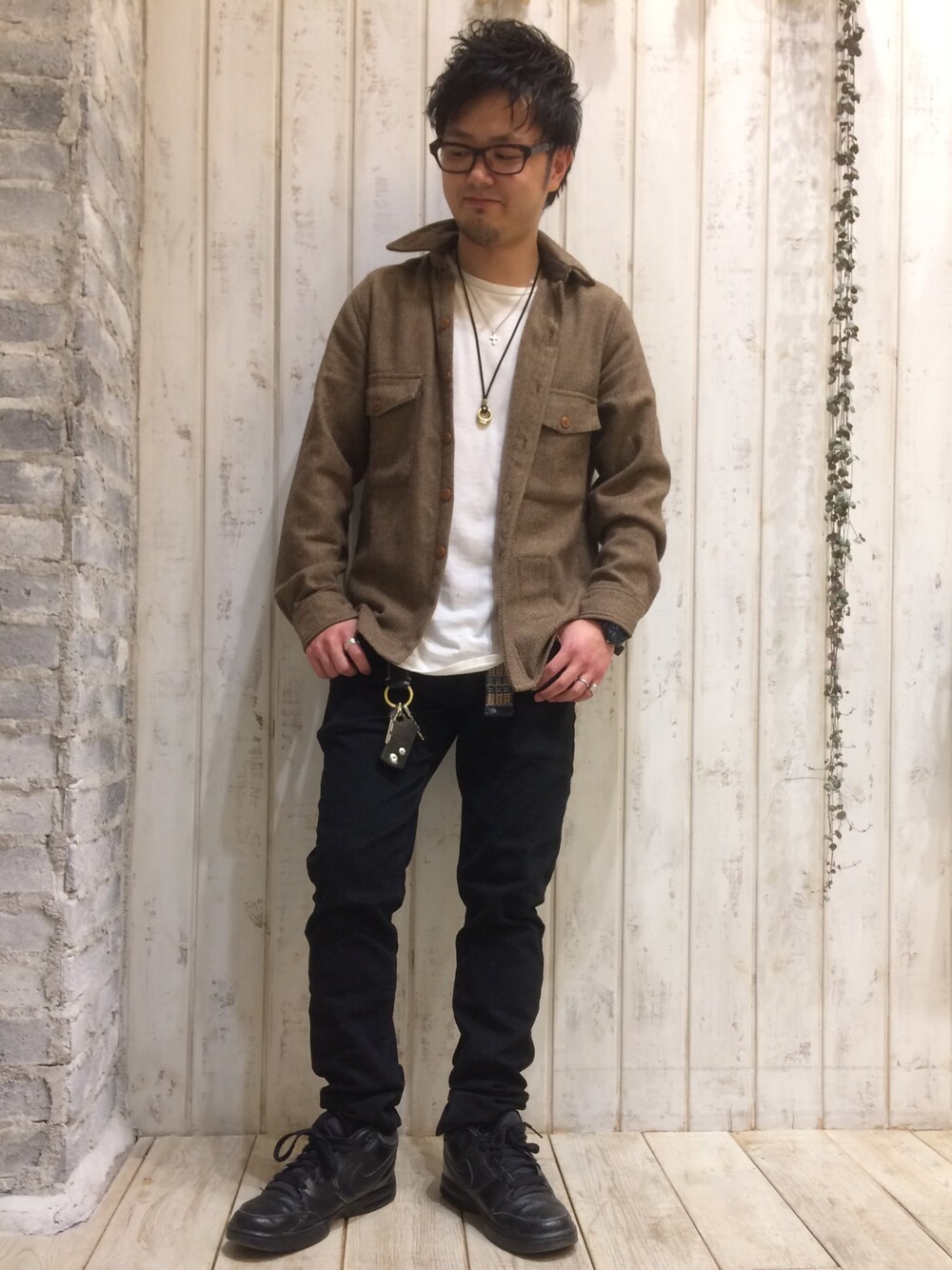 temptationのジャケットでシックな感じを出しつつ、スニーカーで崩してます。 インナーは、ロング丈でレイヤードを。