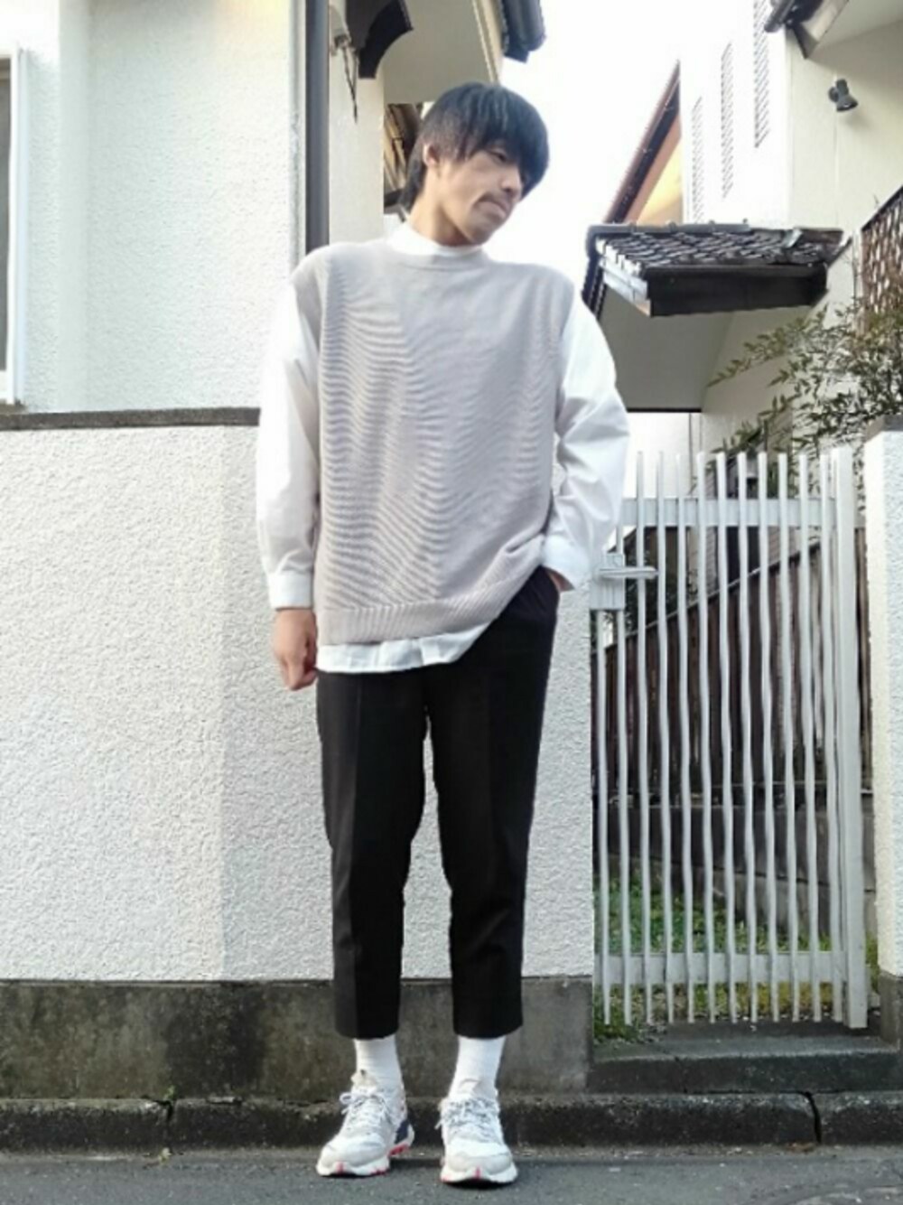 いつも見て下さりありがとうございます! いいね お気に入り フォローありがとうございます! オーバーサイズニットベストコーデ キレイめカジュアルにしました オーバーサイズニットベストとオーバーサイズバンドカラーシャツを合わせました
