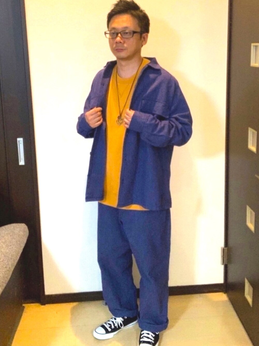 おはようございます! いつも見て頂きありがとうございます😊 今日はやっぱり落ち着くシンプルゆるっと コーデです。 niko and...のデニムセットアップで、上下 ともに程よくゆるっとして、インナーを何色 にするか悩みましたが、黄色入れてみました。 こちらも大きめサイズのスウェットで脱いで もゆるいんです😊 初めてセットアップ着てみましたが、なかなか 面白いですね(笑) それにしても毎回、首からアクセぶら下げないとと落ち着かない😅