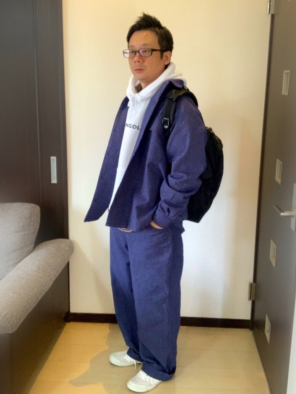 おっはようございます😪 今日は、がっつりゆるっとダボっとコーデです! nikoの上下セットアップで、フード来てリュックも背負っちゃいました。結構モコモコゆるっと(笑) リュック背負って上手く撮れなかったから、小窓に別verを👍 お友達のあきちゃん(a*k)のリュック背負ってるの見たら、背負いたくなった(笑)小窓の別verで勝手に若干リンクさせてもらいました🙇 随分、寝たから、今日はお目目はいい感じだな… (笑) さて、連休明け仕事頑張るか…😣 いつもいいね、お気に入り、コメして下さる方々、元気もらってます!ありがとう😁 懲りずによろしくお願いします(笑)