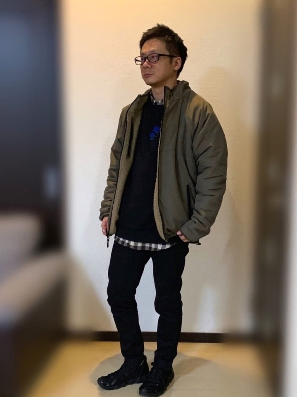 おはようございます😊 いつもこんな私のコーデ見て頂きましてありがとうございます☺️ えーと、今日こそこのコーデでしばらくお休みするから!そのはず!(笑) 今日のコーデは、昨日美容院行ったコーデ! 昨日のボアを裏返したバージョンで、あとは、俺なりブラックコーデで!あーくんの黒コーデ影響で😎ブルゾン裏返すとまたちょっと…何系?ちょっと男っぽくなった気がする🤔 髪型…凄いトサカってたけどね…美容院一緒に連れて行った甥っ子姪っ子の早めのクリスマスプレゼント買いに大きなショッピングモール行って疲れて…帰ったら爆睡して…寝癖でぐしゃっとなったまま撮ったこれ🤣🤣顔も寝起き、疲れてる…(笑) ついでに可愛いパーカー女性用だけど、GLOBAL WORKで見つけて買っちゃった😏 まあ、そんなこんなでまた今日もよろしくお願いします🙇