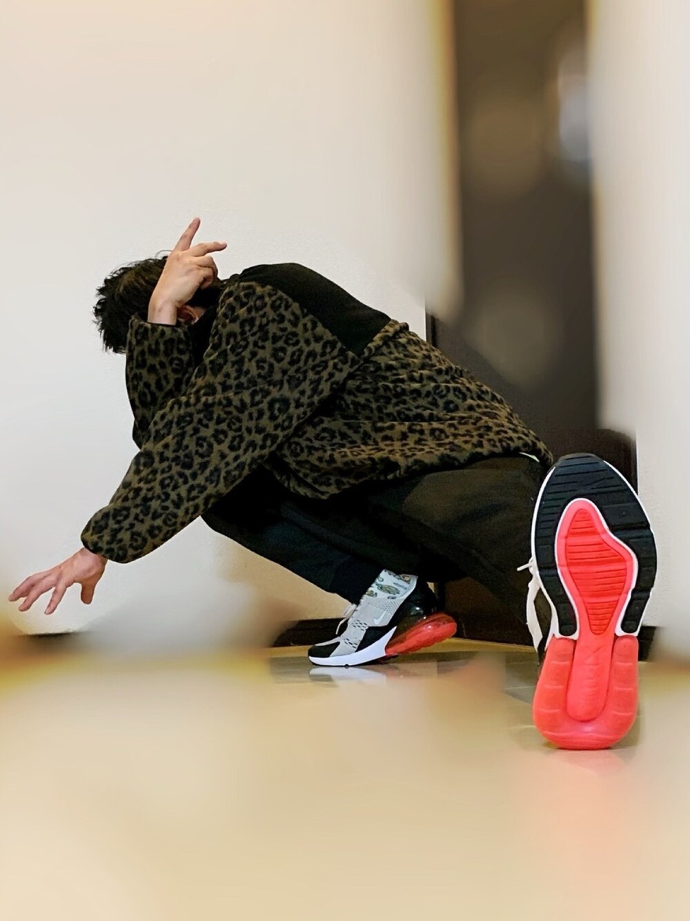 おはスタスタ🌞 今日は、昨日お仕事早く切り上げたから、すこぶらないけど、マシなヒデです👍 いつも、いいね〜、お気に〜、こめぇ〜下さりありがとうございます☺️こんな俺に…嬉しい限りです😭 じゃ、今日のコーデは… 黒豹コーデだな…かなり前に買ったGUのヒョウ柄フリースが服整理してたら、出てきたから…1度も外に着て出てないから…着てあげた👍 そんで、なんとも言えない、今までに着たことない蛍光色の黄緑色のGU5分Tシャツをレイヤードにチャレンジしてやってみたわけよ😄なんでもチャレンジしないとわからんね…意外と好きなんだけど🤔この5分Tシャツ、バックプリントありで、これから使えると思うし、カッコイイと思います。また近々それメインコーデ載せるね… あとは、キュってパンツで締めて、バナナソックス吐いて、エアマックス今日のお題だったから、吐いた🤮 で…なんか先日マキシムシム師匠がかっけぇ〜ポーズしてたから…マキシムシムさんが真似たポーズを真似たポーズをして…腰いわしました…🤣 めっちゃ、カメラのアングル合わせる難しくてこれが限界でした…しかも黒パンでわかりにくいや…😅小窓載せたので…おっちゃんが頑張ったポーズ見てあげて(笑) さて…次は、このポーズは…誰がしてくれるやろか?😳 ☆masakazuさん、またまたフォルダイン感謝です🥺ありがとうございます🐜🐜💕 ではでは、今日もよろしくお願いします😆