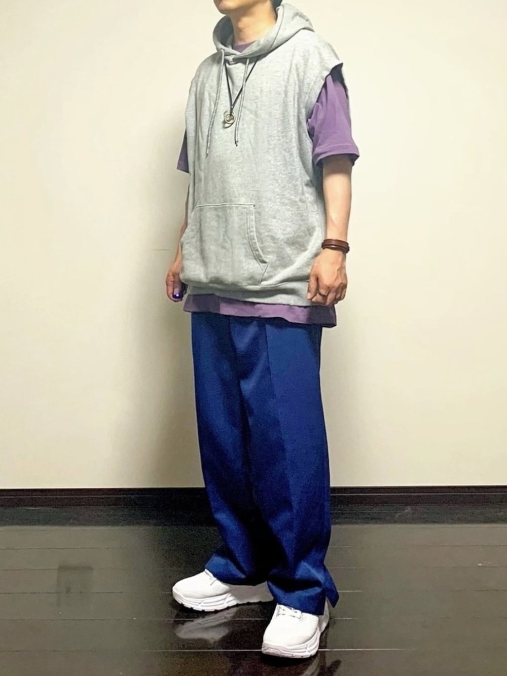 ヒデのパーカー「裏毛ドロップベストパーカー /828036」を使ったコーディネート
