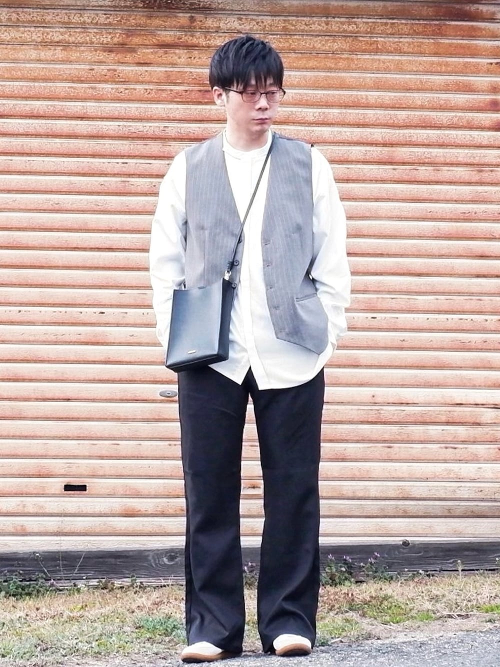 おはようございます😊 もう完全に顔が疲れきってますが…さらけ出しました…ヒデです! いつもご閲覧、いいね、+、ありがとうございます😆お気に入り(+)して頂けると嬉しいです🤩いいね、+、遅くなりますがお返しはさせて頂きますね💁♂️ では… ☆今日のおコーデ☆ なんだかGUで凄く売れ残ってたテラードベストを試しに敢えて買ってみた… それを使ってキレイめカジュアルなコーデですかね💁🏻♂️ ベルトするの忘れてたから、フレアパンツが地面ズルズルですね…一応ポッケに手を入れて持ち上げてます🥴 はい… もし今日もこんなので良ければ、いいね、+、フォロ〜よろしくお願い致します🙇🏻♂️ 昨日の投稿、素敵なフォルダインして頂いた方々ありがとうございました🙇♂️
