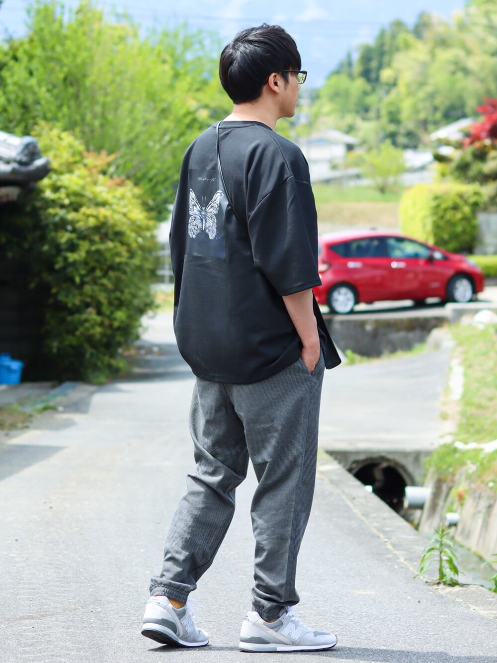 おはようございます。 いつも、いいね、+、ありがとうございます😆お気に入り(+)して頂けるとさらに嬉しいです🤩いいね、+、遅くなりますがお返しはさせて頂きますね💁♂️ ほな… ☆今日のおコーデ☆ ビッグシルエットのバックプリントTシャツ使ったゆるっとキュッとした夏コーデです😊 ❇︎NilwayのバックグラフィックビッグTシャツ、ゆったりと着れてゆるっと好きにはたまらんシルエットですね👍バックプリントの存在感がかなりいいです。薔薇と蝶の2種類のプリントあって…蝶が好きなんでね…🦋でね…💁🏻♂️ 個人的には、フロントの蝶のロゴがポイントになって、またええねん。 今回は、グレーなガンクラブチェックなジョガーパンツと合わせてみたりしてみました🙋🏻♂️ はい…今日もこんな感じです… ではでは、 今日もこんなので良ければ、いいね、+、フォロ〜よろしくお願い致します🙇🏻♂️ いつもフォルダインして下さる方々、ありがとうございます😊