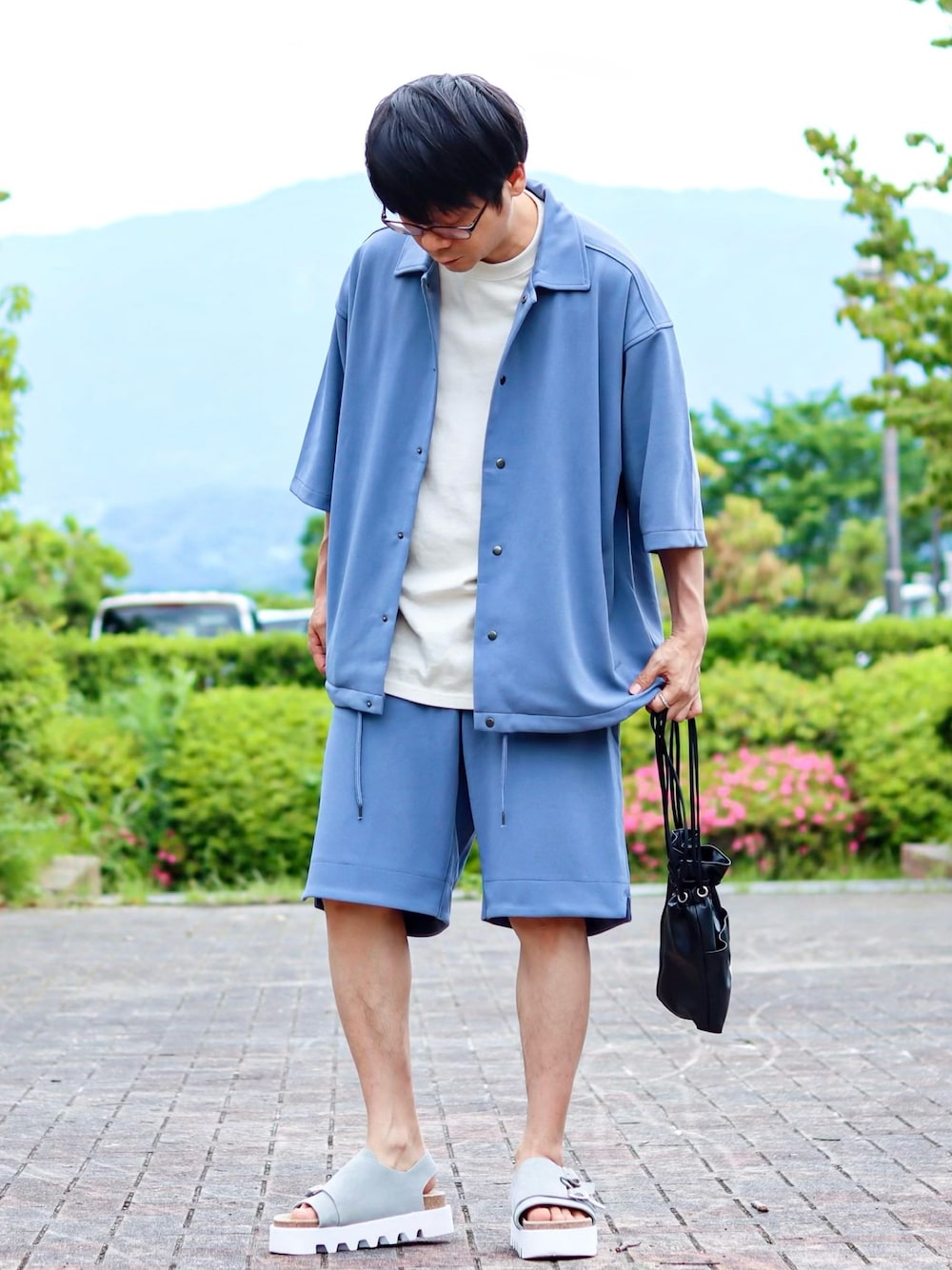 おはようございます。 いつも見て頂きありがとうございます😊 良かったら、いいね、お気に入り(+)よろしくお願いします🙇🏻♂️フォローして頂けると嬉しいです☺️ ほな… ☆今日のおコーデ☆ 爽やかな色味のセットアップ使った『爽やかゆるっとシンプル夏コーデ』です。 *Loungewear tokyoの【セットアップ】カットジョーゼットストレッチ コーチジャケット×ショートパンツ ワンマイルウェアを着てます。 着心地、肌触りが凄く良くて、夏にはもってこいです👍 なにより気に入ってるのが、上下共に程よいゆるっとサイズ感がかなり好みで、久しぶりに自分好みのコーデになりましたね… この価格でこのセットアップ買えるのは、お得ですわ😏 この色味が凄く良いのでほんまシンプルにアイボリーTと微かにブルーなスウェードサンダルで合わせてみました😊 という… 今日もこんな感じです… ではでは… いつもフォルダインして下さる方々、ありがとうございます😊