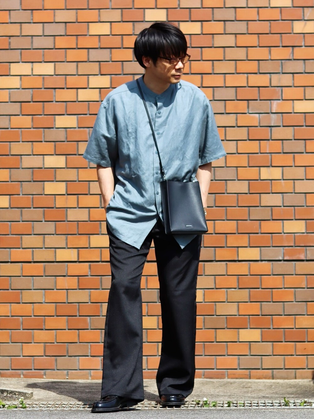 おはようございます。 いつも見て頂きありがとうございます😊 良かったら、いいね、お気に入り(+)よろしくお願いします🙇🏻♂️フォローして頂けると嬉しいです☺️ ほな… ☆今日のおコーデ☆ シンプルにキレイめモードなコーデです。 淡いブルーなゆるっとバンドカラーシャツとフレアパンツを合わせてみました。 はい、今日もこんな感じです… ではでは、 今日もこんなので良ければ、いいね、+、フォロ〜よろしくお願い致します🙇🏻♂️ いつもフォルダインして下さる方々、ありがとうございます😊