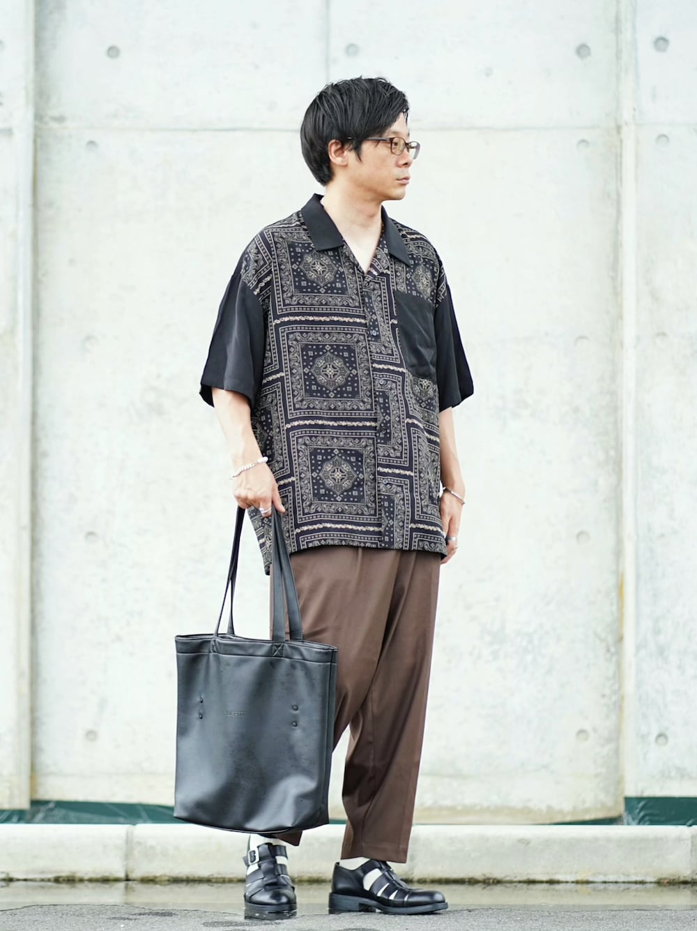 ヒデのシャツ/ブラウス「バンダナ柄 オーバーサイズ オープンカラーシャツ<ユニセックス>」を使ったコーディネート