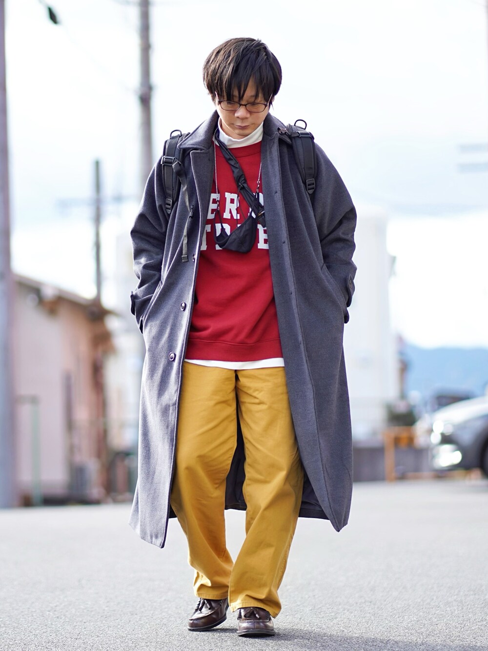 いつも見て頂きありがとうございます😊 はい… カラーパンツ使って、キレイめカジュアルコーデです。 コート着回して…今回は、明るめな色使ってね… 赤のカレッジスウェットと黄色のペインターパンツ合わせ。落ち着いたコートの色味とローファーでキレイめ感をね… *bottoms: WEB限定【ユニセックス】EDWIN STEPMARK ワイドペインターパンツ。程よいルーズなシルエットがお気に入りです👍 はい… ではでは、 今日もこんなので良ければ、いいね、+、フォロ〜よろしくお願い致します🙇🏻♂️ いつもフォルダインして下さる方々、ありがとうございます😊